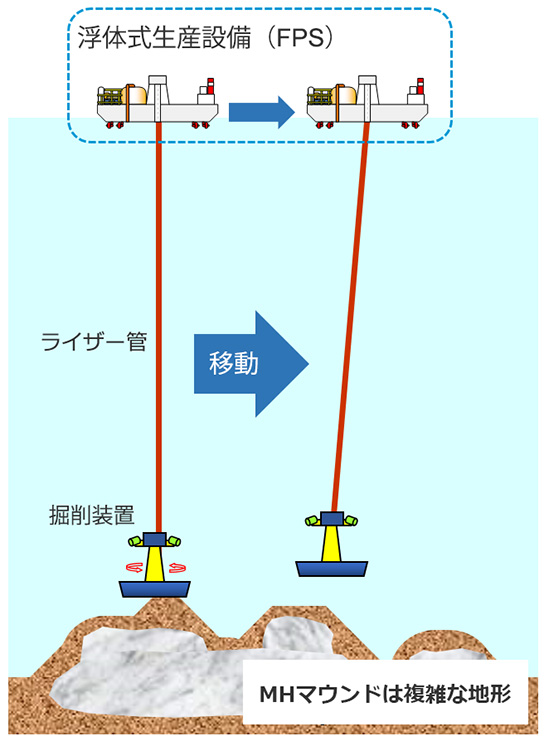 当社は、表層メタンハイドレート開発の商業化にむけて、浮体式海洋石油・ガス生産設備分野のリーディング・カンパニーとして培った浮体式設備の設計技術およびオペレーション&メンテナンス実績を、表層メタンハイドレート開発に応用するための研究・開発に取り組んでいます。