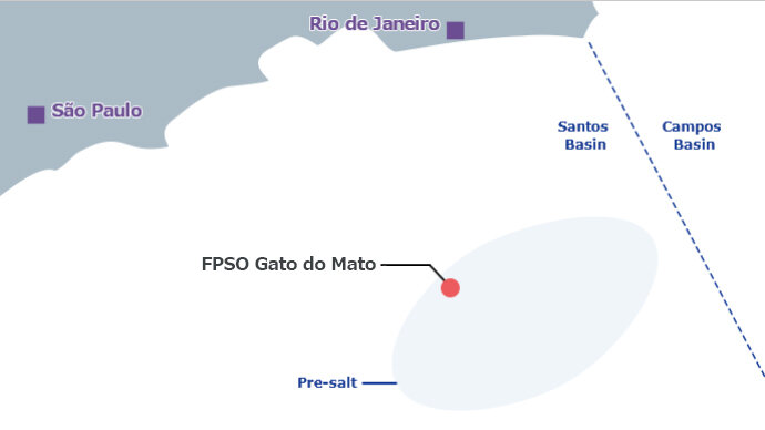 本FPSOは、英国の大手石油会社Shell plc.の子会社である Shell Brasil Petróleo Ltda 社 (以下「シェル社」)が開発を進める、ブラジル・リオデジャネイロの南方の沖合約 200kmに位置するOrca フィールドの開発プロジェクトに用いられます。